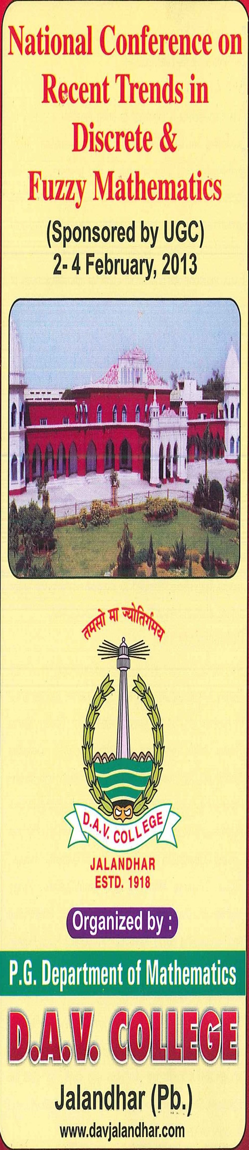 Organised by Post-Graduate Department of Mathematics DAV College, Jalandhar 144 008 (Pb.)